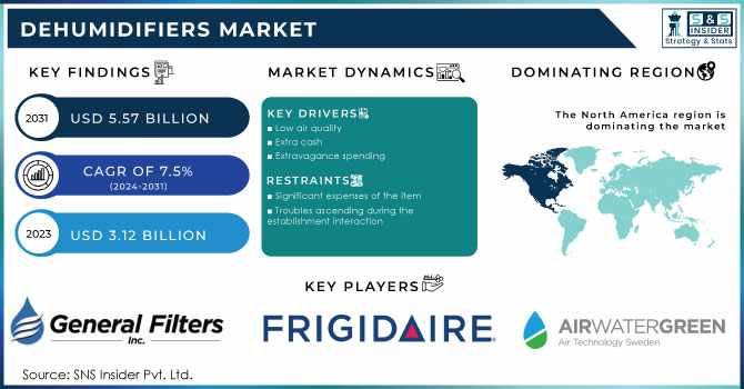 The Dehumidifiers Market Size was esteemed at USD 3.12 billion in 2023 and is supposed to arrive at USD 5.57 billion by 2031 and develop at a CAGR of 7.5% over the forecast period 2024-2031.