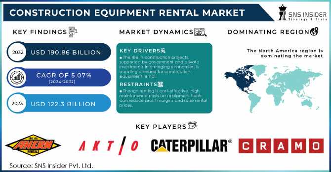 The Construction Equipment Rental Market size was estimated at USD 122.3 Billion in 2023 and is expected to reach USD 190.86 Billion by 2032 at a CAGR of 5.07% during the forecast period of 2024-2032.